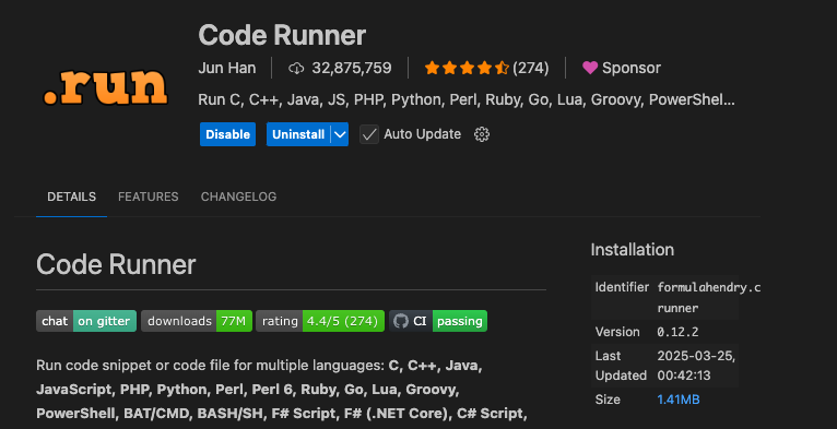 우클릭 후 Run Code를 눌러주면 터미널에서